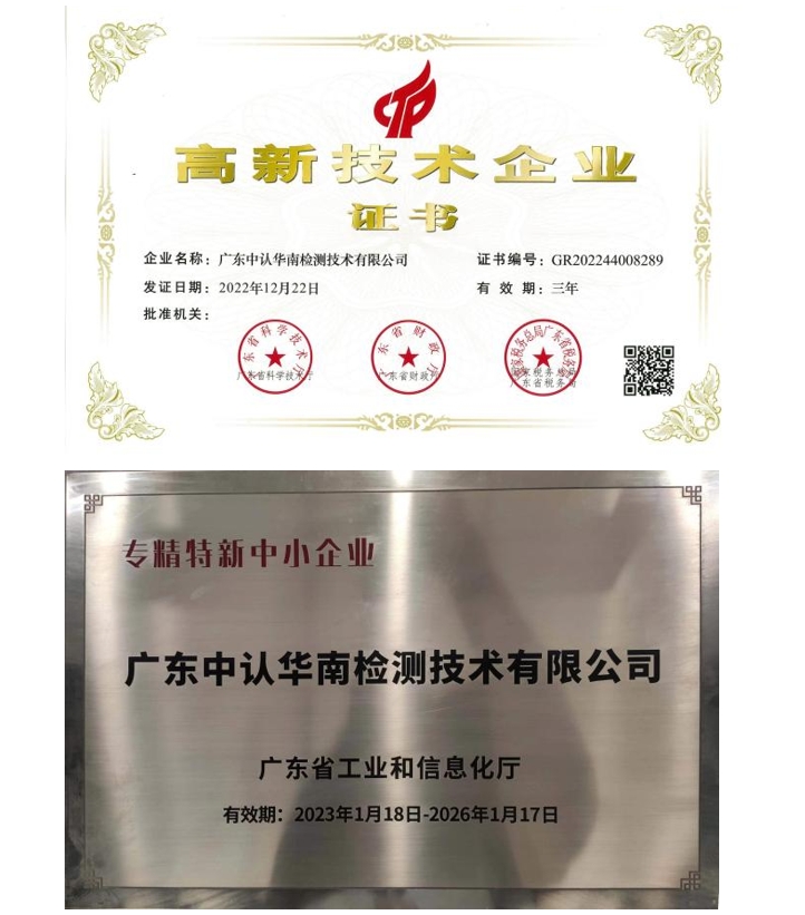已获得国家认证认可监督管理委员会(CMA)颁发的检验检测机构资质认定证书和中国合格评定国家认可委员会(CNAS)颁发的实验室认可证书,标志着已具备国家及国际认可的硬件条件、管理水平和检测能力。