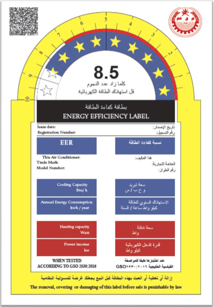 Sample of Omani EER label: